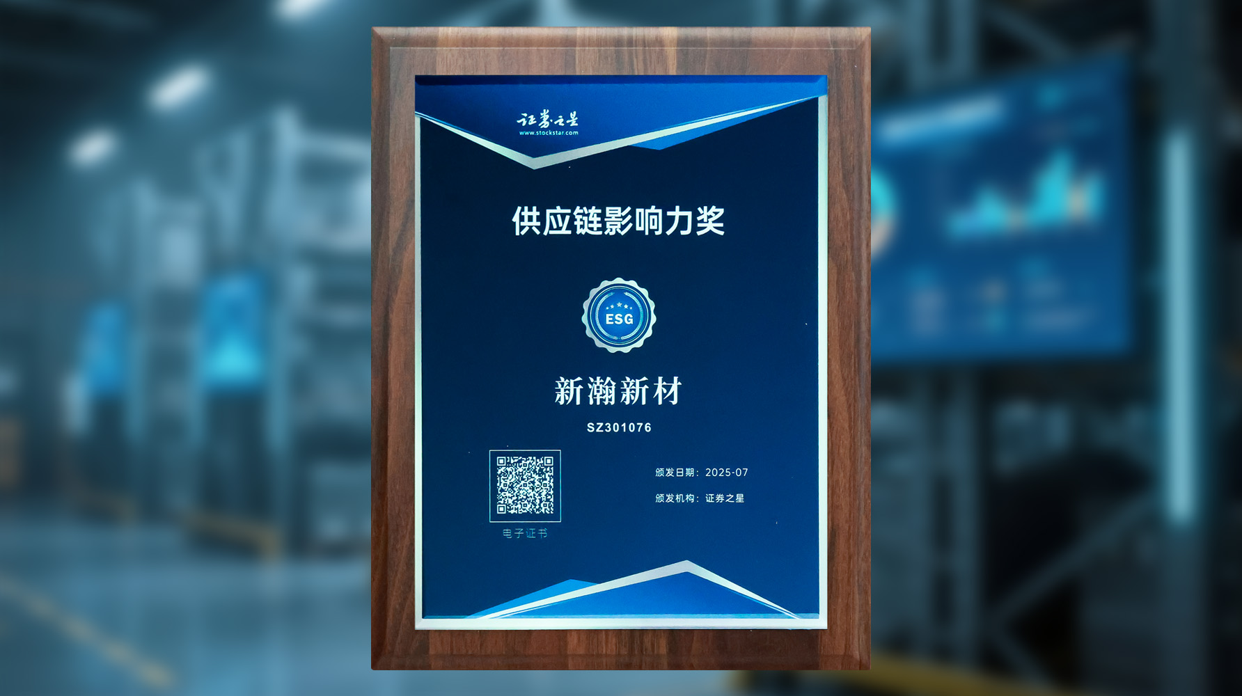 2025年,公司凭借在环境、社会与治理(ESG)领域的深厚积累与创新实践,荣获证券之星颁发的“供应链影响力奖”;同时,公司亦入选“ESG金牛奖百强”,在深交所信息披露方面获评A级,并于万得(Wind)发布的2025年ESG评级中获评A级。这些成绩与荣誉,是对公司持续推动可持续发展、构建负责任供应链体系的高度认可,体现了行业与市场对新瀚新材在ESG综合表现、透明运营与责任担当方面的广泛赞誉。