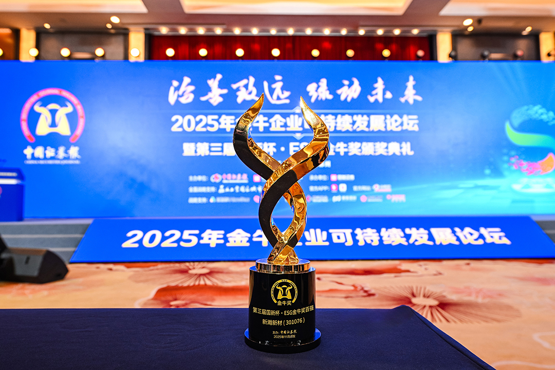 11月26日,在由中国证券报、中国国新主办,国新证券承办的“2025年金牛企业可持续发展论坛暨第三届国新杯·ESG金牛奖颁奖典礼”上,新瀚新材凭借在环境、社会及治理(ESG)领域的扎实实践与突出成果,成功入选“ESG金牛奖百强”榜单。